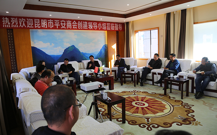 按照《昆明市平安商会创建活动实施方案》的要求,昆明市平安商会创建活动领导小组经过评定审查,初步从全市400余家商协会中选取10家商会认定为昆明市平安商会,并从中抽取云南省江苏商会、云南省杭州商会、昆明市华坪商会三家进行实地核查。12月14日,昆明市平安商会创建活动领导小组一行在走访了其他两家商会后,于下午莅临华坪商会进行指导、核查工作。