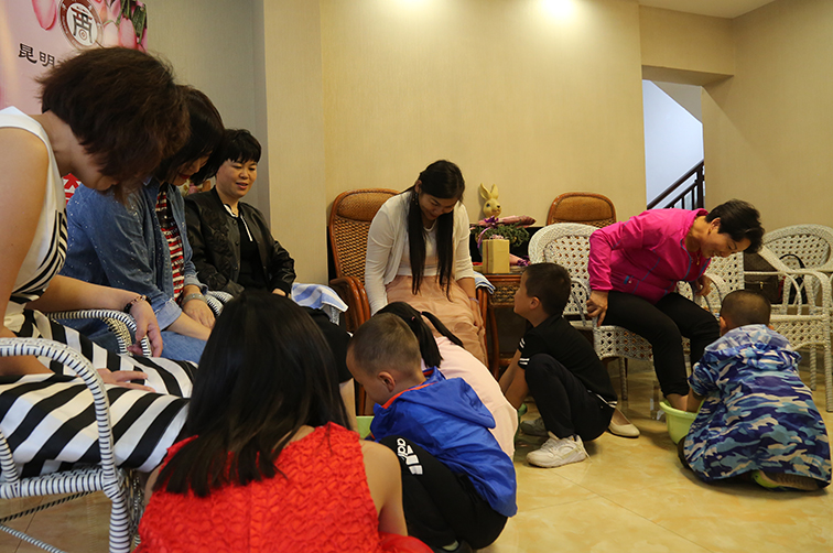 孩子们还为妈妈认真地洗了一次脚,从脱鞋、清洗、擦干到穿鞋、系鞋带,全都一丝不苟的完成。有劳动就有收获,各位妈妈现场亲手制作的美味甜点让孩子们的笑声不绝于耳。