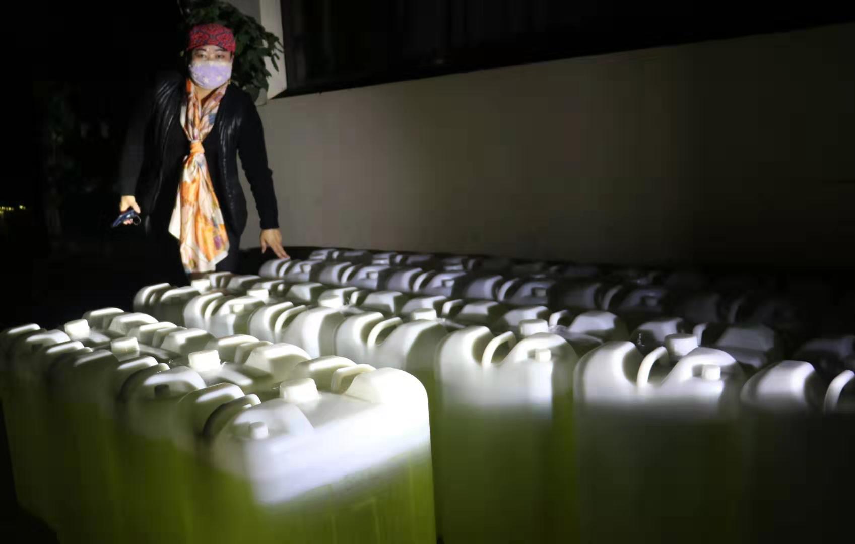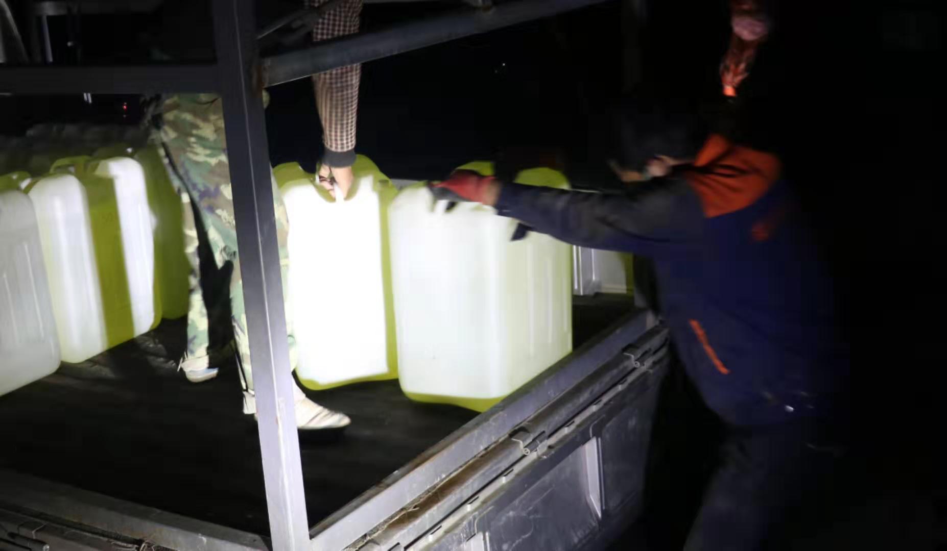 防疫当前,时间和速度就是战斗力。随着新型冠状病毒感染的肺炎疫情防控力度不断加大,医用口罩、酒精、消毒液等抗疫物资成了当下最热销、最紧俏的物资。在商会疫情防控指挥部成员的多方努力下,终于在短时间内从厂家协调抢购了一批医用消毒液。为避免夜长梦多,几位商会成员冒着被疫情感染的风险,于2月7日深夜将抗疫物资顺利运送至商会仓库,等待运送至家乡政府疫情防控中心。