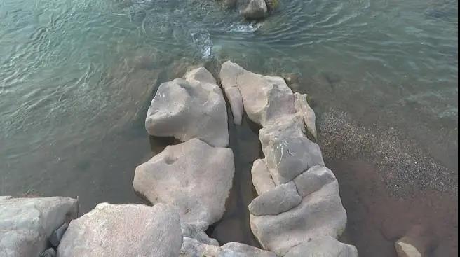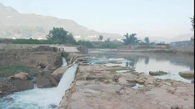 跟现在的水利工程相比,朱家拦坝显得有些简陋,一眼看去,全由巨石堆叠而成,但石块突起,在百余年水流作用下,变得圆润光滑,又别有一翻风貌。