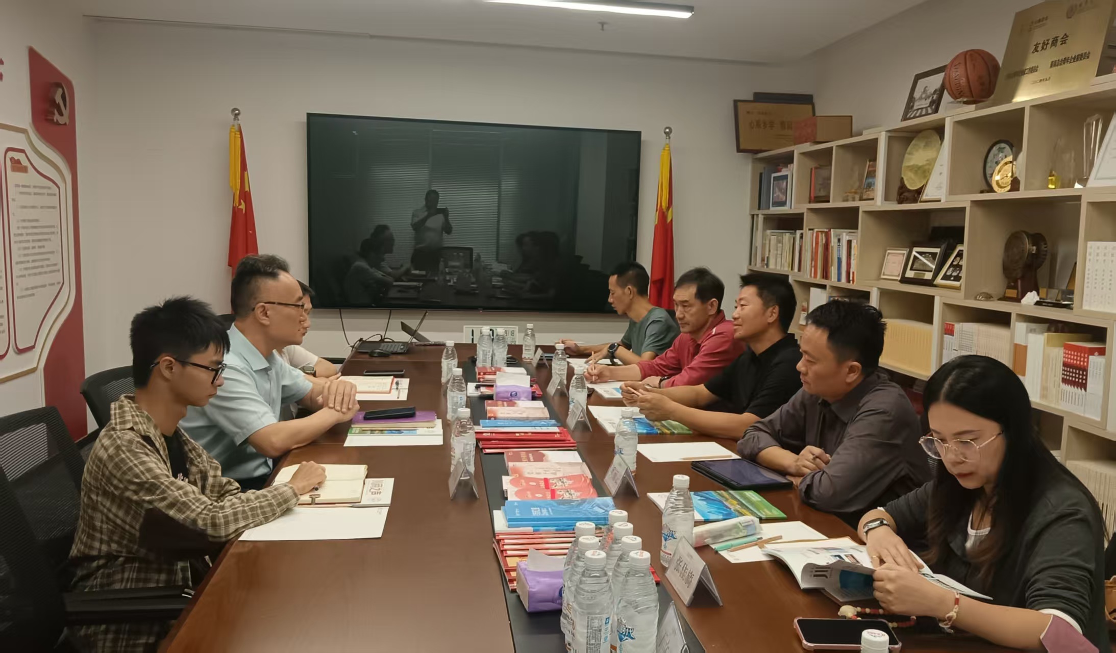 在川商总会,受川商总会秘书长、新希望集团党委书记张明贵委托,党委委员、综合办公室主任薛巨实携秘书处与考察团进行了座谈。双方就商会办会经验、商讯共享、聚合发展、以商促教等方面进行了共同探讨交流。